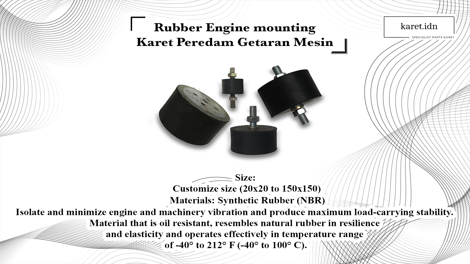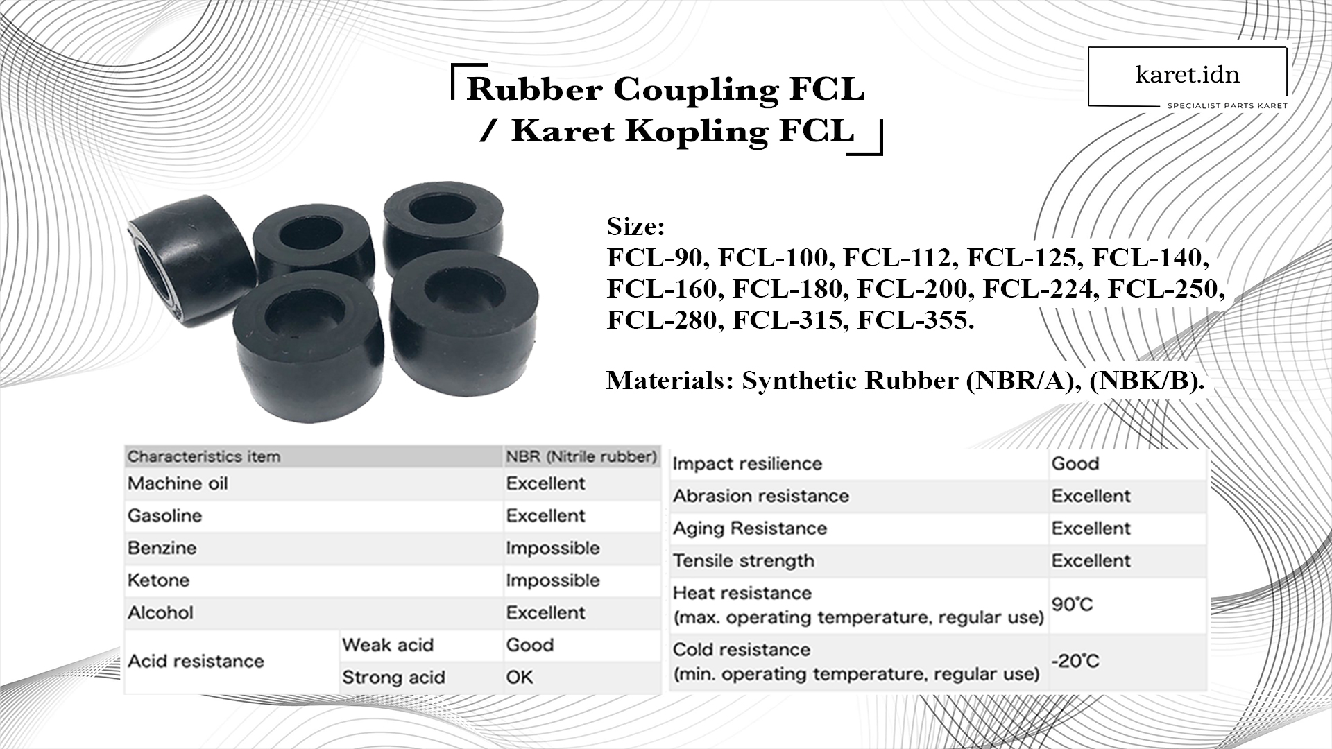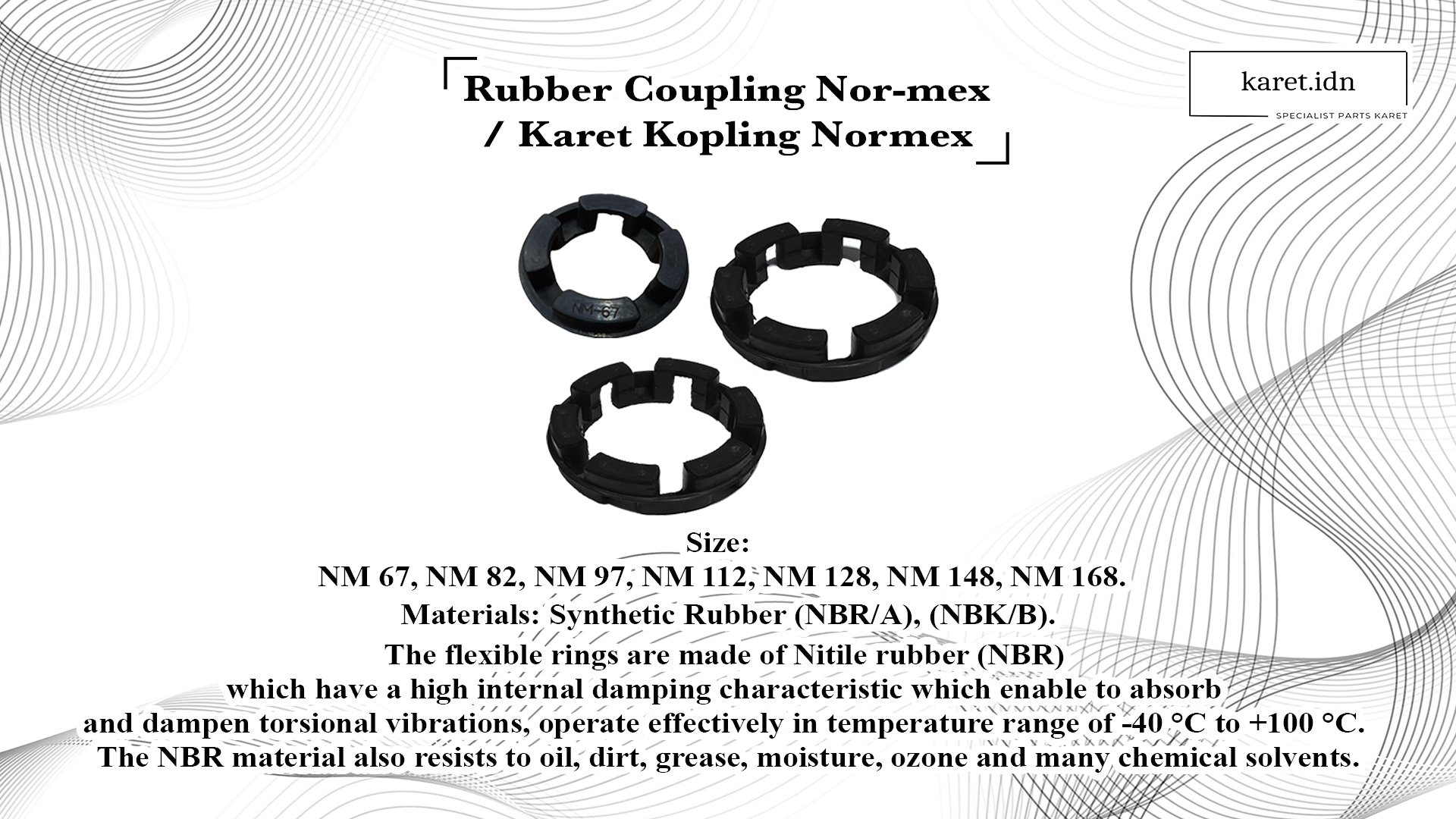 Kami bangga menjadi spesialis dalam parts karet, menyediakan kopling, flange, engine mounting, seal, O-ring, elastomer, dan juga menerima pesanan custom.